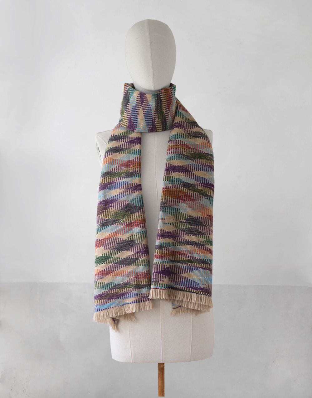 Kleo est une écharpe singulière, tissée avec des fils teints d’une manière toute particulière. En effet, les fils de Kleo sont teints en suivant la technique de l’Ikat.
