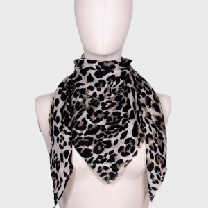 Léo est un carré léger en cachemire et laine, sublimé par son motif léopard intemporel.