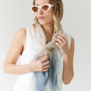 Autour du cou, dans les cheveux ou noué selon l’envie, Tinos se porte de mille façons.